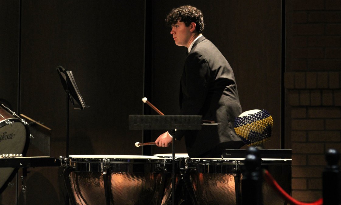 This local high school student earned a place at one of the country’s top music schools Hayden Redling plays the timpani during the DCHS symphonic band's recent spring concert. - photo by Rio White Hard work really does pay off.