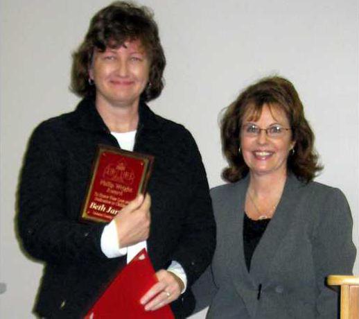 Dawson County Middle School teacher Beth Jarrett was recognized as the recipient of the Philip Wright Award at the school board meeting recently.