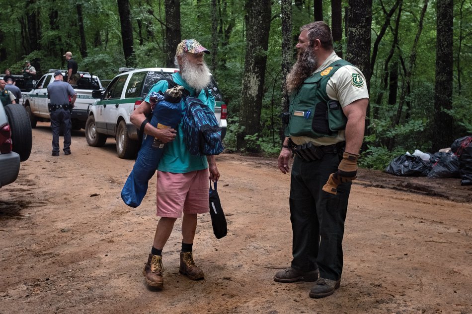 According to Chattahoochee-Oconee National Forest supervisor Betty Jewett, McGallicher’s 30-officer team is similar to units brought in to deal with forest fires and other natural disasters. She said that unlike those other ICTs, McGallicher’s officers are a blend of local Lumpkin County law enforcement and deputized Forest Service members.