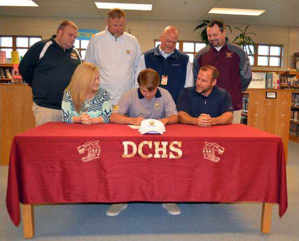 Dawson County High School golfer Hunter Burt signed last week to play college level golf at Truett McConnell University. During a signing celebration at the school's library on Feb. 15, Burt's high school coach Frank Brown and his future Truett McConnell coach Steve Patton told stories about Burt and his dedication to the sport. Brown said that Burt's sophomore year, the DCHS golf team played a region game out of Crystal Falls, and he lost by one stroke.