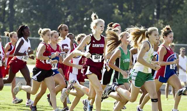 Madalyn Walters leads a group of runners in the Eagle Run held at East Jackson High School last Saturday. Walters finished in first place out of 122 runners with a time of 19:48.19. - photo by Ryan Coker Dawson Community News