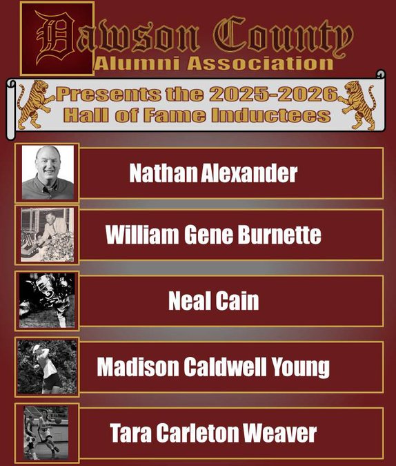 The Dawson County Alumni Association announced five inductees for the 2025-26 hall of fame class. The new members will be inducted into the DCAA Hall of Fame on Dec. 19 at the Dawson County High Performing Arts Center.